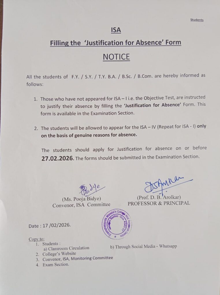 Affiliated to Goa University and Recognized by UGC