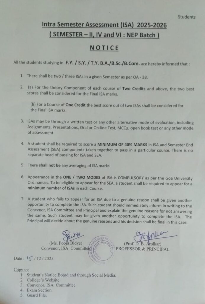 Sem II/IV/VI NEP ISA 2025-26 – Notice