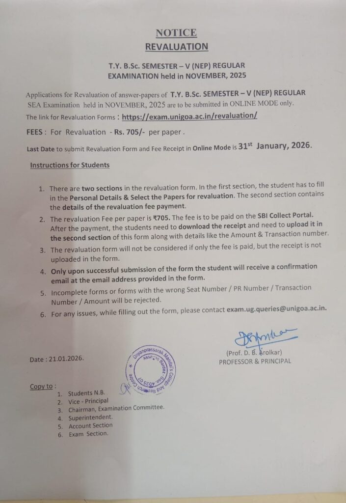 TY BSc Sem V (NEP) Regular Exam Nov 2025 Revaluation – Notice
