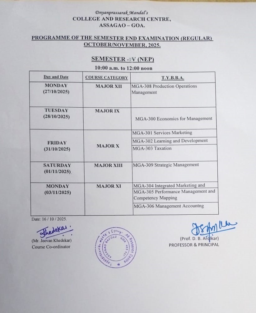 Affiliated to Goa University and Recognized by UGC